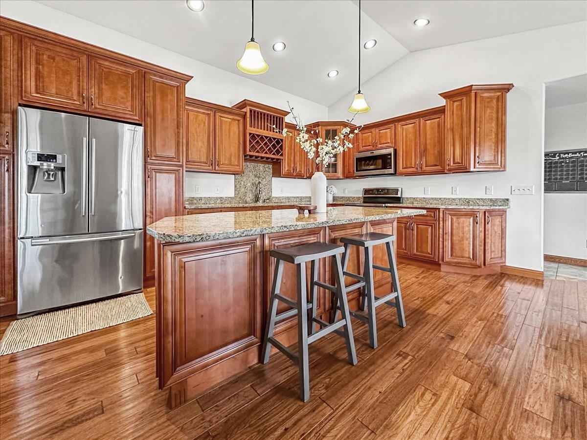 Don't miss this beautiful west-end walkout ranch! Situated in the Carver Heights subdivision & close proximity to schools, you will love the privacy of the backyard with no neighbors directly behind. This home offers 5 bedrooms, 3.5 bathrooms, & a 3 car garage. Nearly 2,000 finished square feet on the main floor featuring spacious eat-in kitchen, gas fireplace, main floor laundry and drop-zone with lockers! The large finished lower level provides tons of extra living space including a family room, wet bar, full bathroom, two bedrooms, and great storage space! Amazing outdoor living space including newly painted deck and patio to enjoy the well maintained secluded backyard! Make this house your new home just in time for summer!
